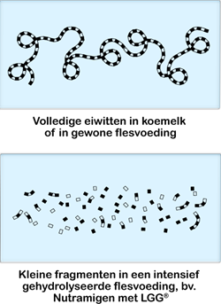 Nutramigen* LGG® is de enige hypoallergene flesvoeding die Lactobacillus rhamnosus GG (handelsbenaming LGG®), een uitgebreid onderzochte vriendelijke bacterie, bevat. Nutramigen* LGG® heeft aangetoond dat het de aanpak van koemelkallergie verbetert, waardoor zuigelingen sneller kunnen terugkeren naar normale voeding dan met Nutramigen zonder LGG®.